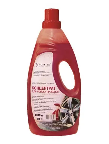 • И, в-четвертых, искатель проколов предлагается в концентрированном виде, поэтому небольшой флакон по низкой цене будет использоваться несколько дней даже при большой нагрузке на шиномонтажную мастерскую.