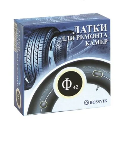 Для ремонта любых типов камер стоит применять латки камерные Rossvik. Большое разнообразие размеров позволяет подобрать оптимальный вариант накладки. Вулканизировать материалы можно «холодным» и «горячим» методами.